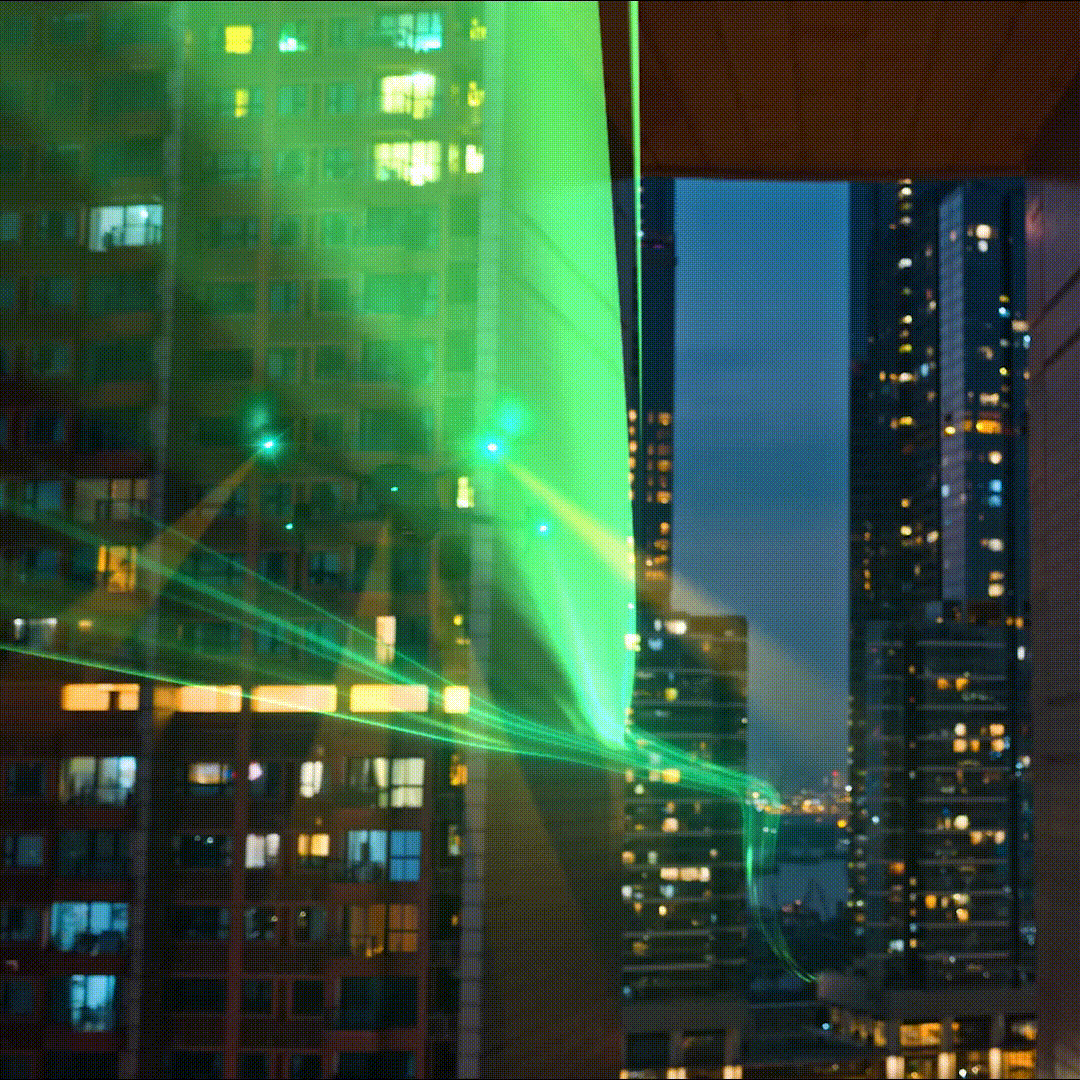 Forward-facing LiDAR detects tall buildings in darkness and auto-adjusts the return path.